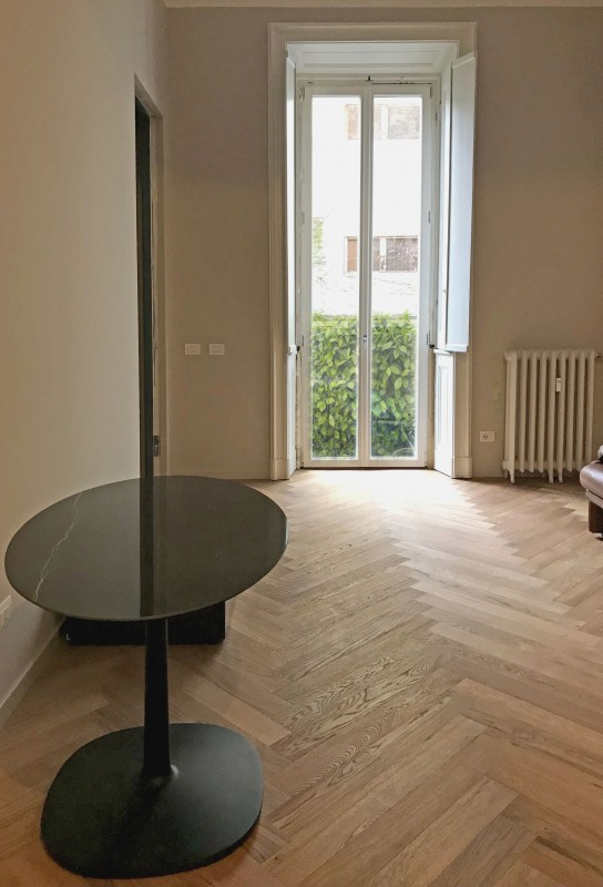 Il recupero di parte dei pavimenti esistenti, delle cornici in gesso, degli imbotti e degli scuretti interni delle finestre, ci hanno permesso di conservare il sapore originale di questa casa.