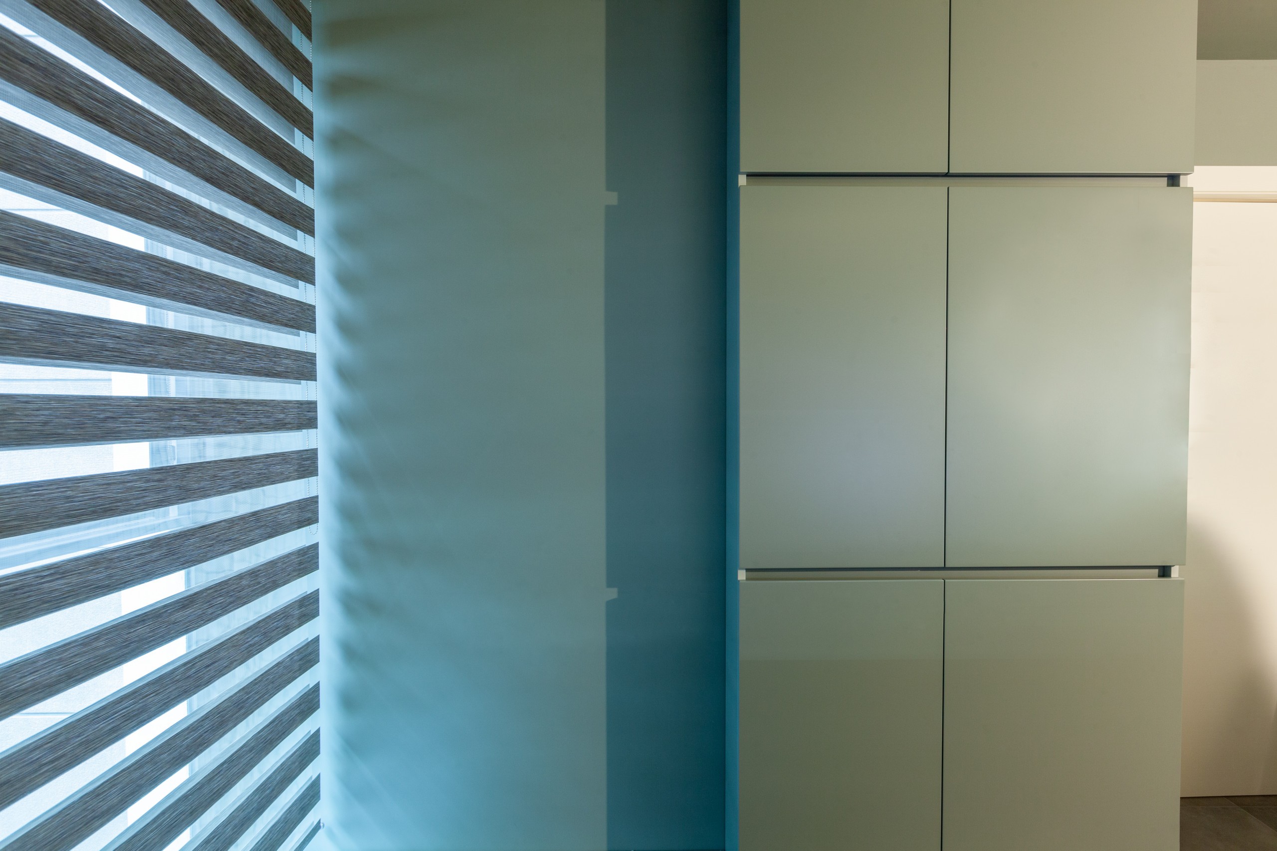 Le tende oscuranti sono di tipo a rullo, di tessuto tecnico, adatte ad un ambiente cucina, che garantiscono, con l’alternarsi di strisce orizzontali leggere e pesanti, un oscuramento totale o parziale e una facile pulizia
