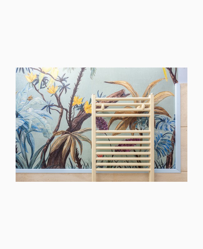 Abbiamo naturalmente conservato la pietra di Noto e ricercato un perfetto accordo cromatico, una giusta wallpaper e un soffice pavimento per rendere questa stanza da bagno un vero salotto in poche mosse.