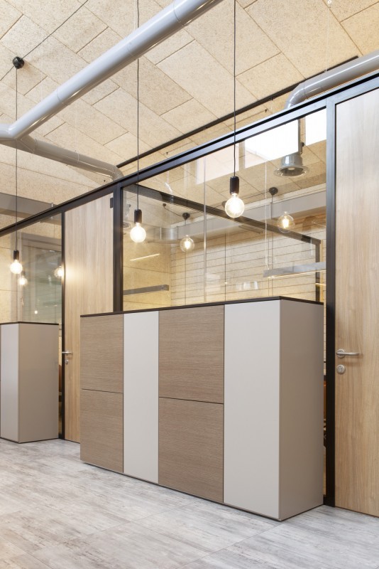 Si è ottenuto uno spazio luminoso, dall'impronta 'industrial', accogliente e confortevole che non dimentica di comunicare con l'out-door con generose vedute sui cortili esterni.